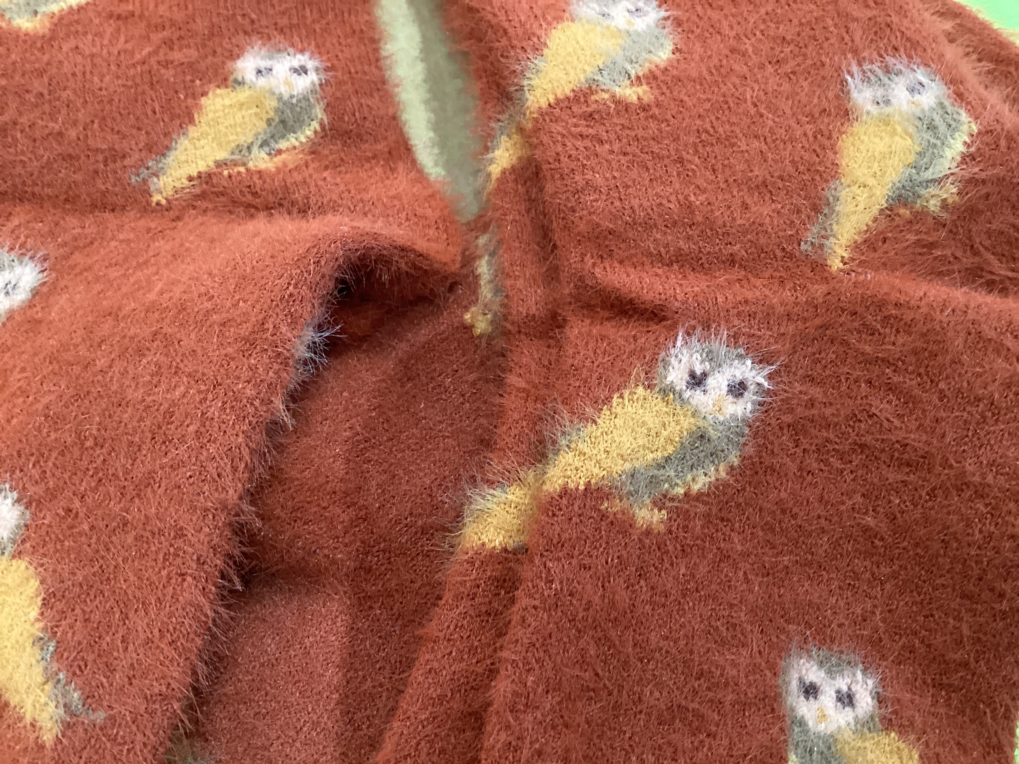 Powder Tangerine Mini Owl Fuzzy Socks